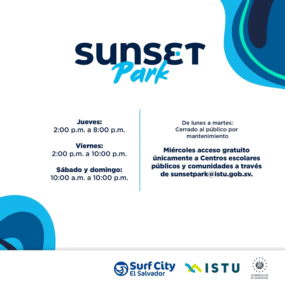 Este hermoso Parque se encuentra en el sector sur de la zona central del país, en el departamento de La Libertad como parte de la franja costera marina Surf City. Si desea combinar un paseo a la orilla de la playa, disfrutar de un agradable ambiente y panorama, Sunset Park ubicado en el puerto de la libertad es la mejor opción.